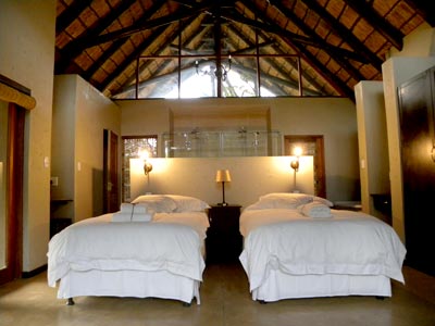 The vast main lodge is open plan with a large formal lounge (with library), dining area, fully equipped kitchen with cold room and scullery, family room, bar (both with flat screen TV's & DSTV), and large viewing deck, all with superb furnishings to meet your every requirement.